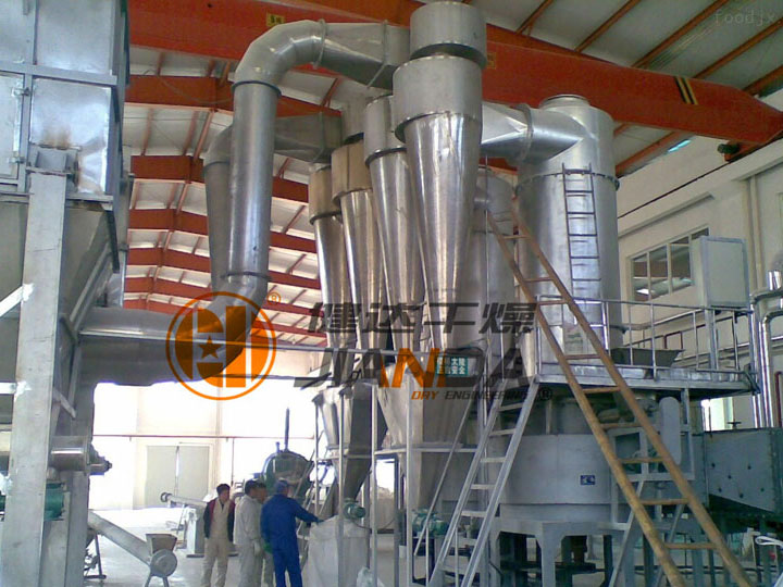 由于干燥室內氣速高,物料停留時間短,達到高效、快速、小設備、大產量。 干燥室上部加裝陶析環及旋流片可以控制出口物料的粒度及溫度,以達到不同物料的終水份粒度的要求。